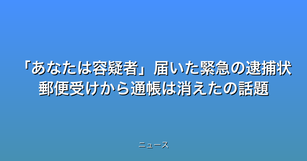 「あなたは容疑者」届いた緊急の逮捕状 郵便受けから通帳は消えたの話題