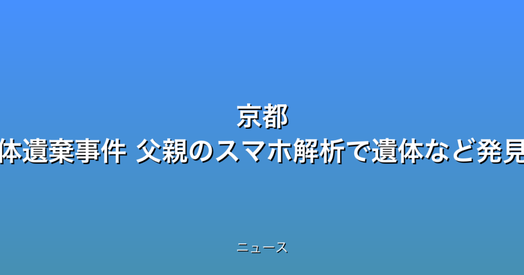 京都 男児遺体遺棄事件 父親のスマホ解析で遺体など発見の話題