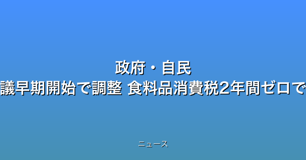 概要: 食料品の消費税を2年間ゼロにする自民党の公約実現に向けて、政府・自民党は、野党に参加を呼びかけて超党派の「国民会議」で早期に議論を始めたいとして調整を急ぐ方針です。
