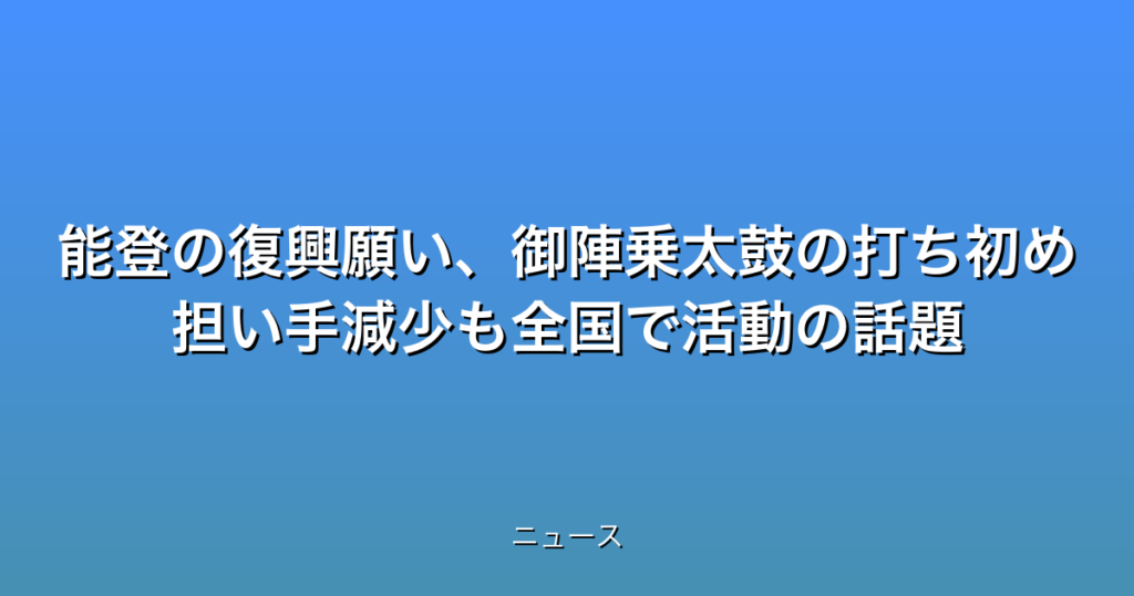 能登の復興願い、御陣乗太鼓の打ち初め 担い手減少も全国で活動の話題